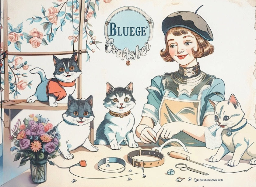 BLUEGEは「愛猫とお揃いのお洒落を楽しむ」をコンセプトに、猫首輪と革小物を制作しています。