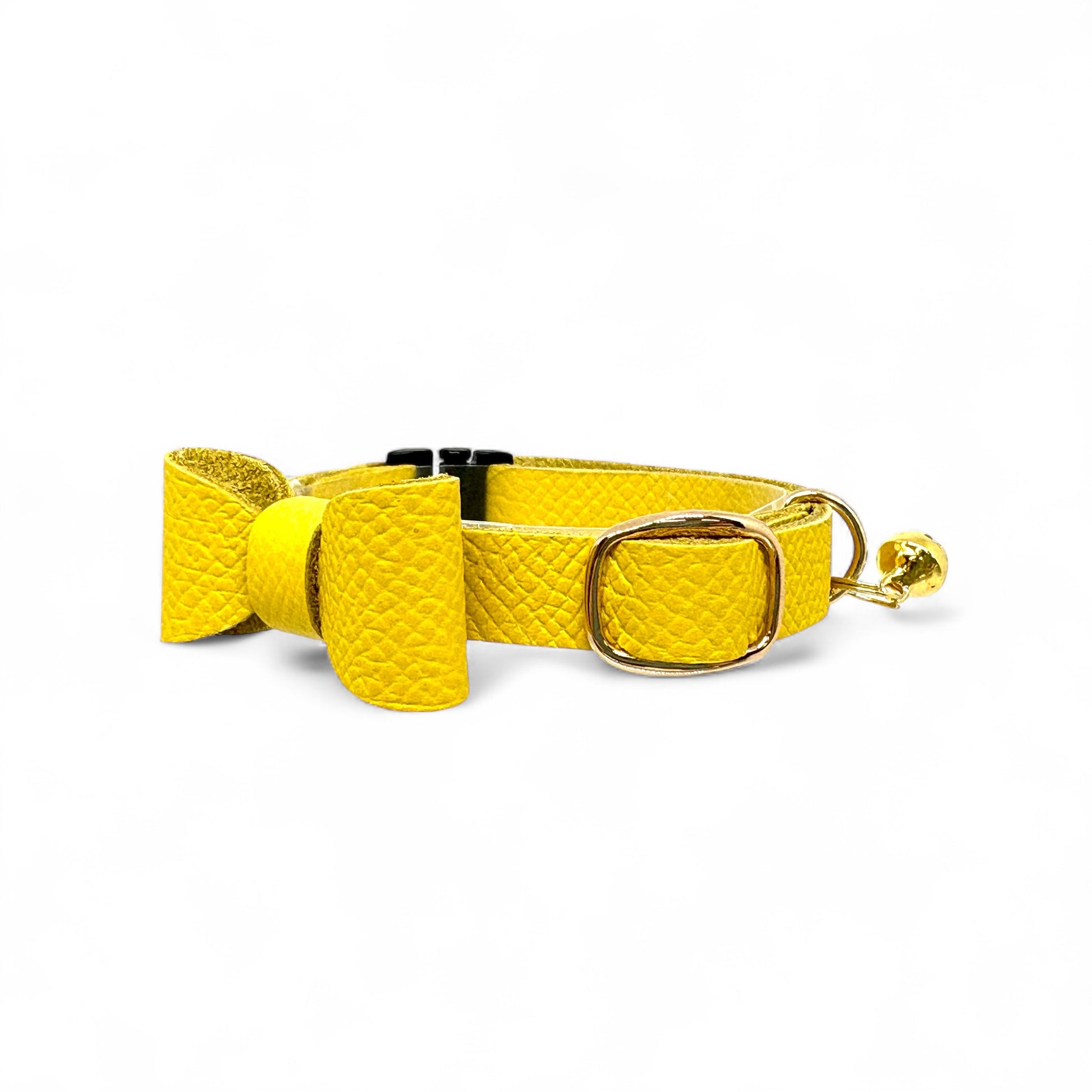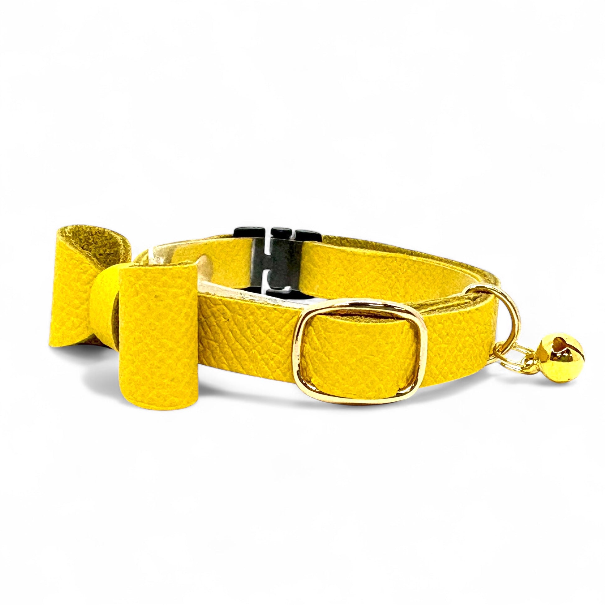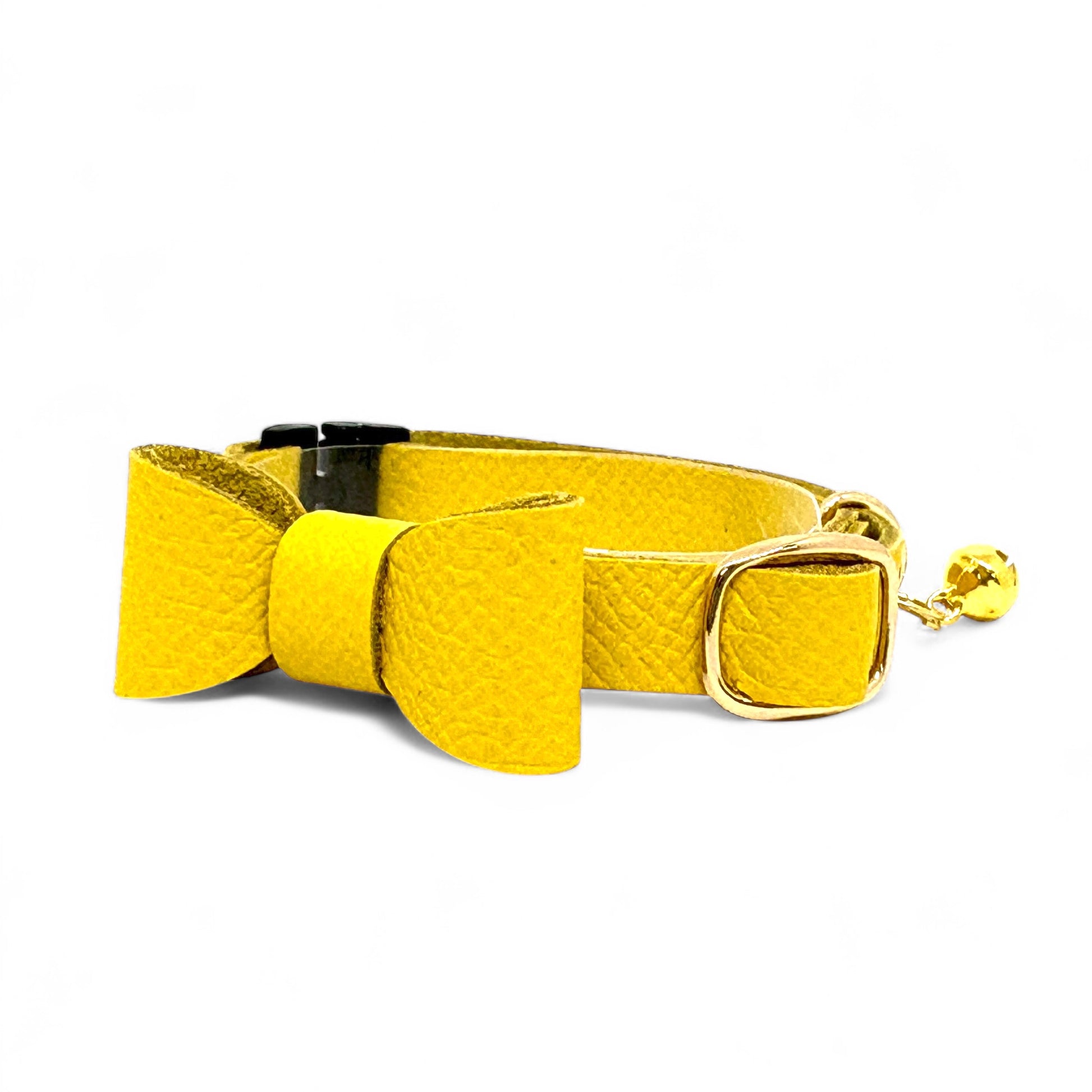 猫 首輪 本革 | レモンイエロー | リボン付き | セーフティバックル|名前入れ|BLUEGE